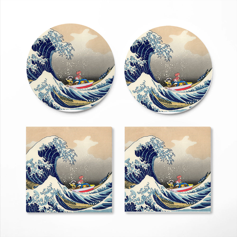 Ponyo On The Cliff By The Sea The Great Wave Japan Ceramic Drink Coasters