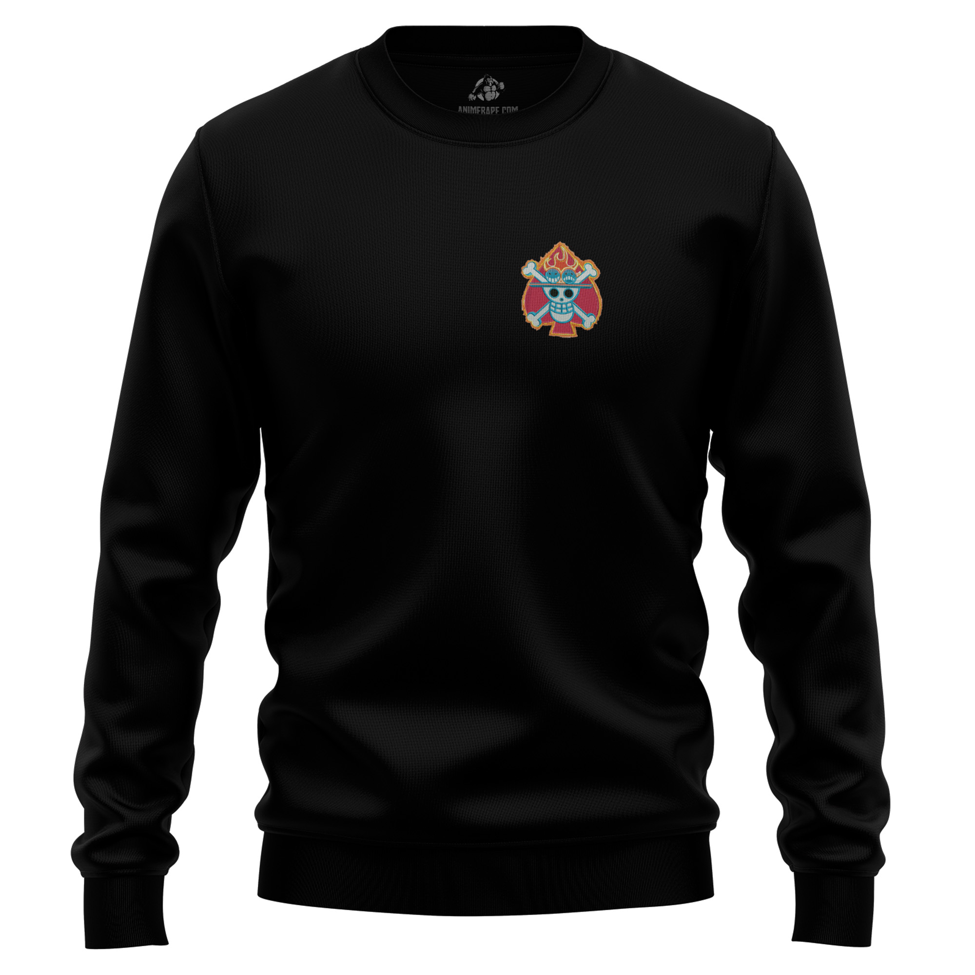 Introducing the “Portgas D. Ace Pirate Logo One Piece Embroidered Sweatshirt” – a tribute to the fiery spirit of Portgas D. Ace, one of the most iconic characters in the world of anime.