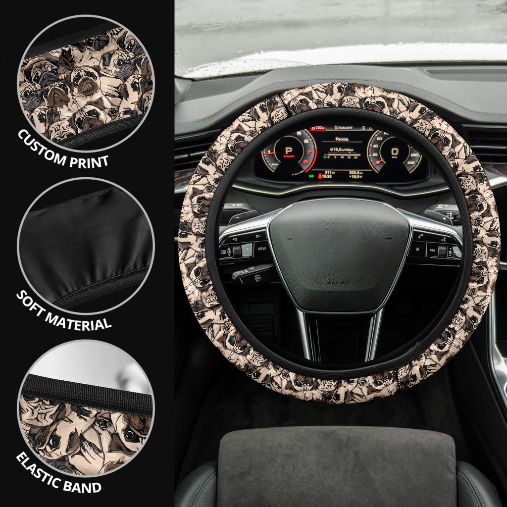 Cute Funny Pug Dog Premium Car Steering Wheel Cover