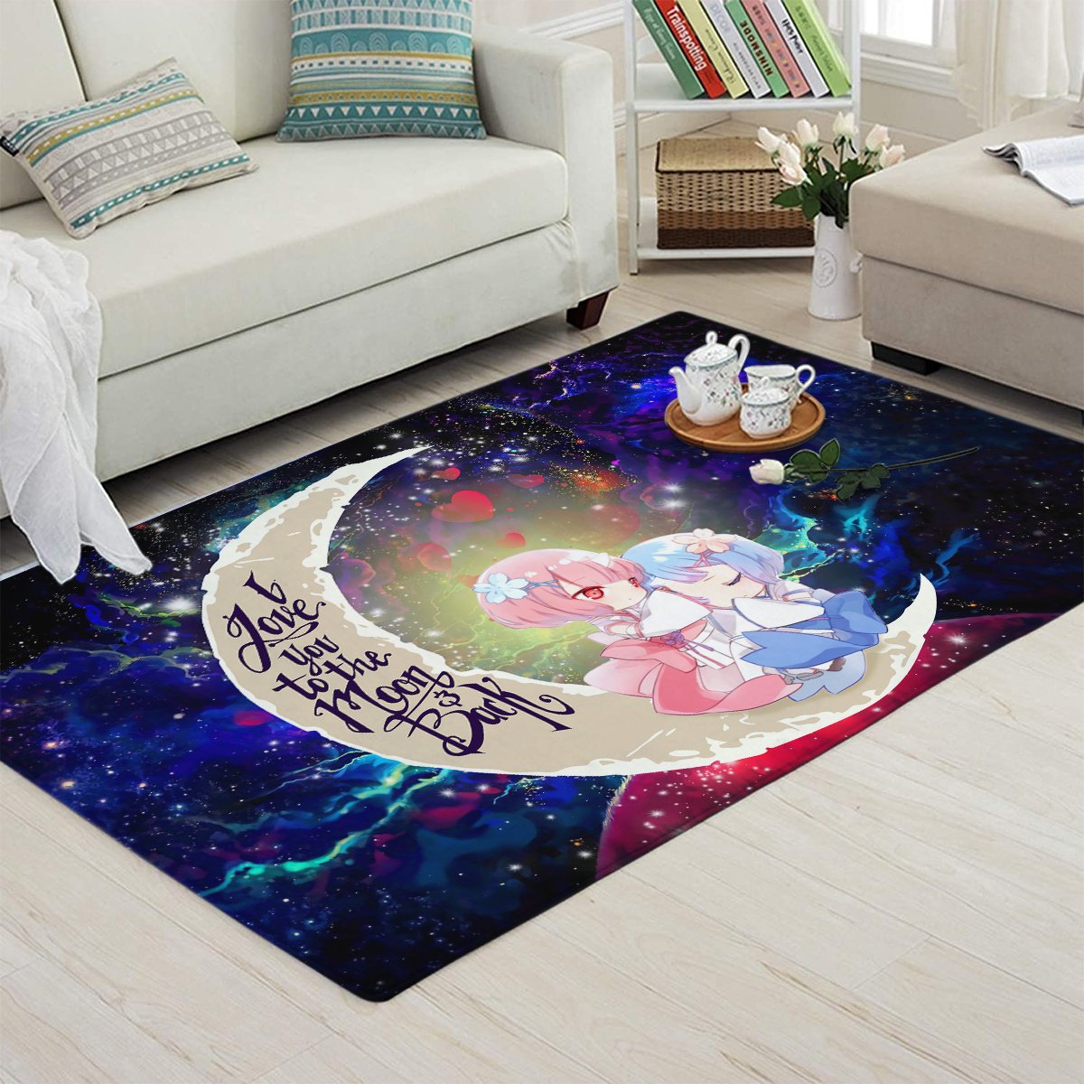 Elevate your living space with the **Ram And Rem Re Zero Love You To The Moon Galaxy Carpet Rug** and showcase your passion for anime in style.