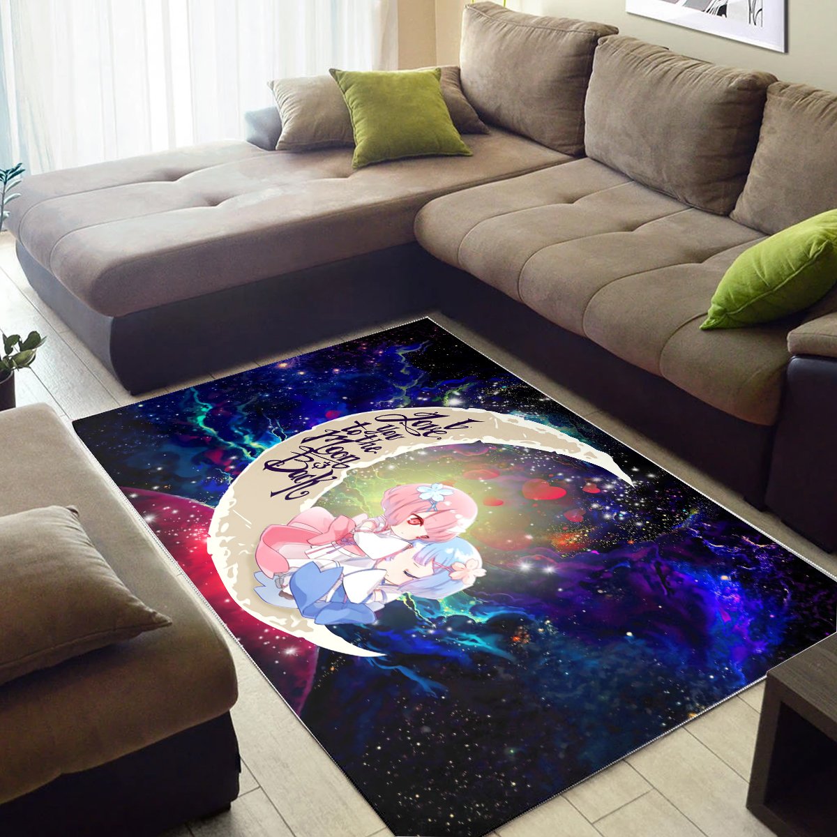 Ram and Rem are integral characters in the universe of “Re:Zero.” These twin sisters offer a unique blend of strength, loyalty, and charm that has captured the hearts of fans worldwide. The **Ram And Rem Re Zero Love You To The Moon Galaxy Carpet Rug** beautifully showcases their bond and individual personalities, making it a must-have for true fans and collectors alike.