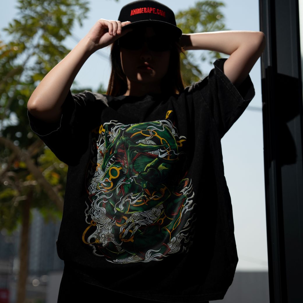 Embrace the spirit of Rayquaza and elevate your wardrobe with this vintage tee, available exclusively at AnimeBape.