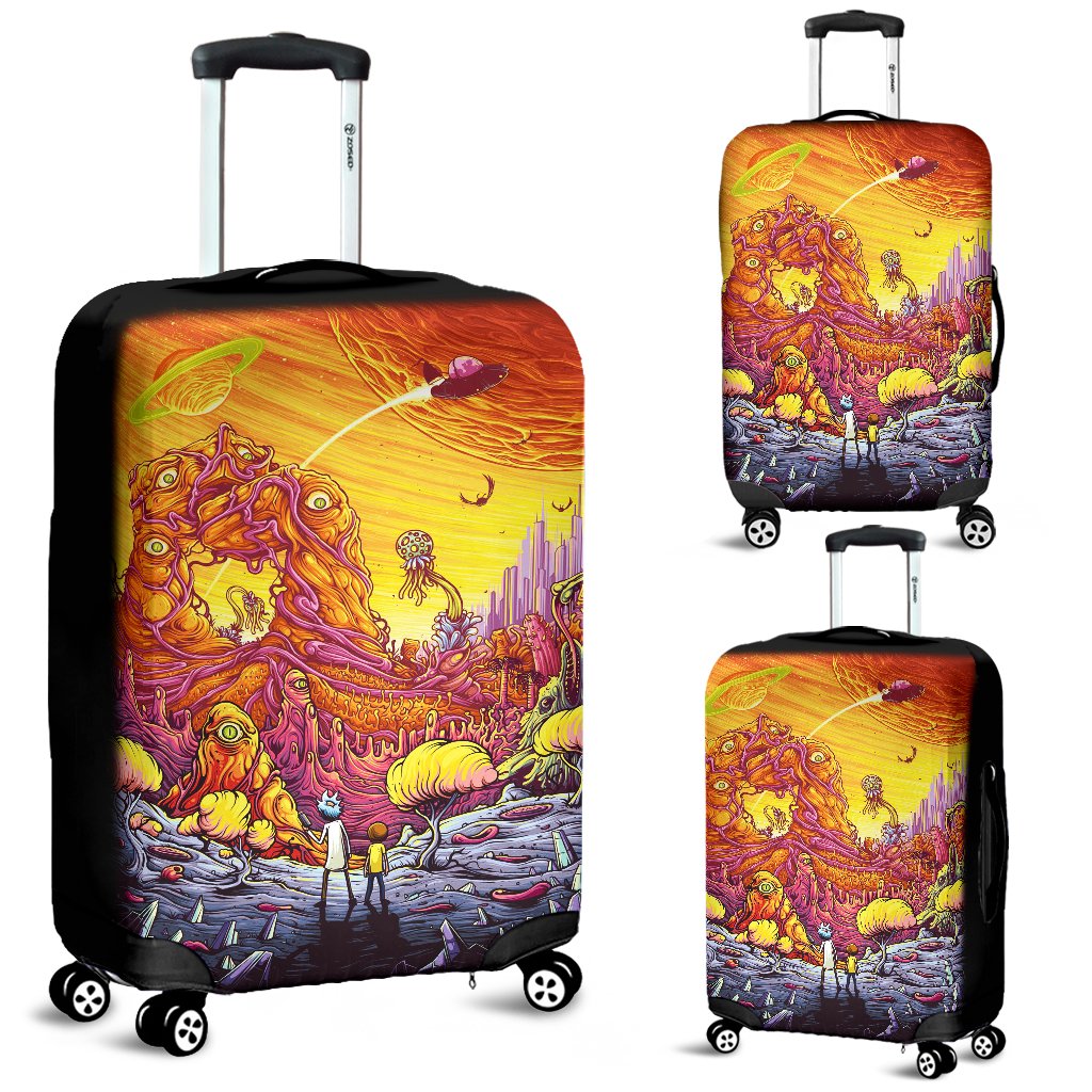 Embrace your passion for “Rick and Morty” and protect your luggage in style with the Rick And Morty Luggage Cover Suitcase Protector 3 from AnimeBape.