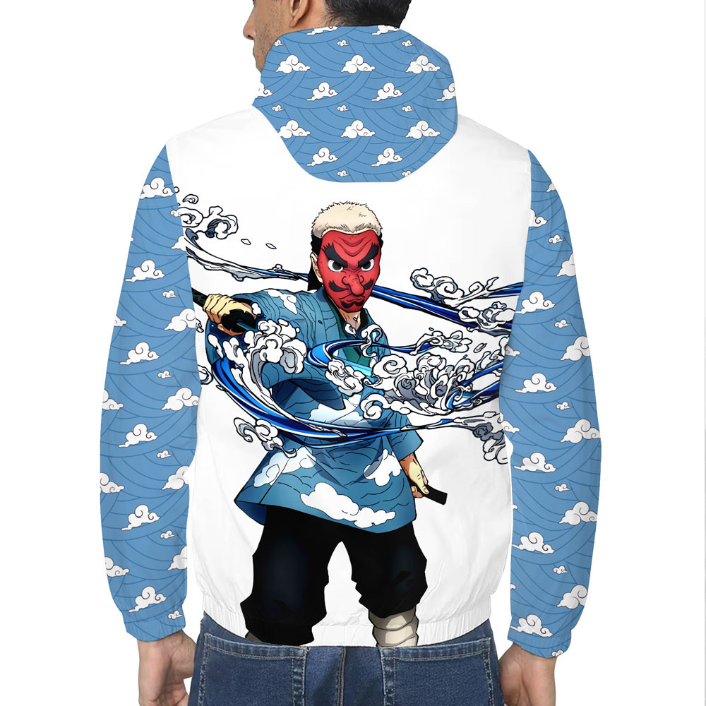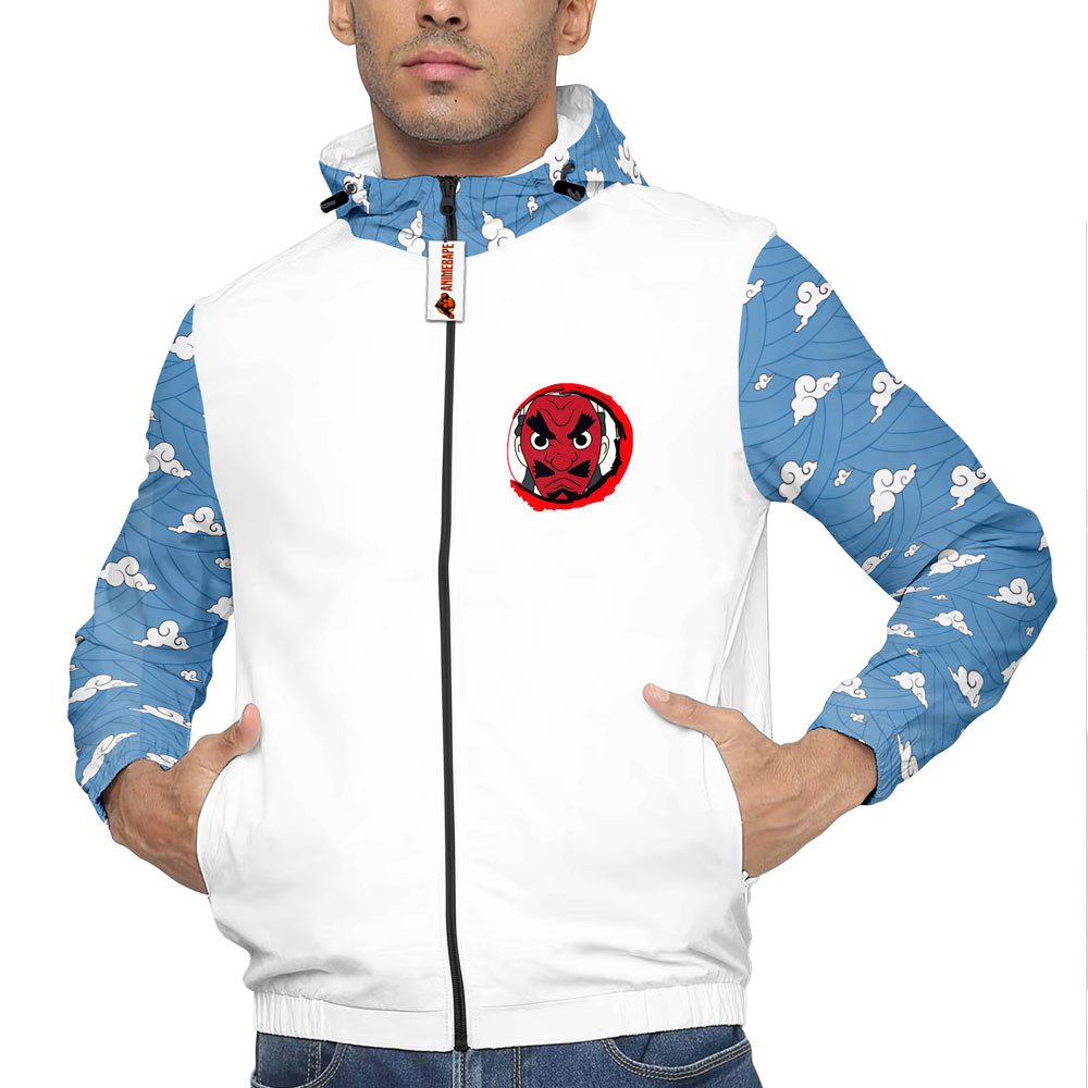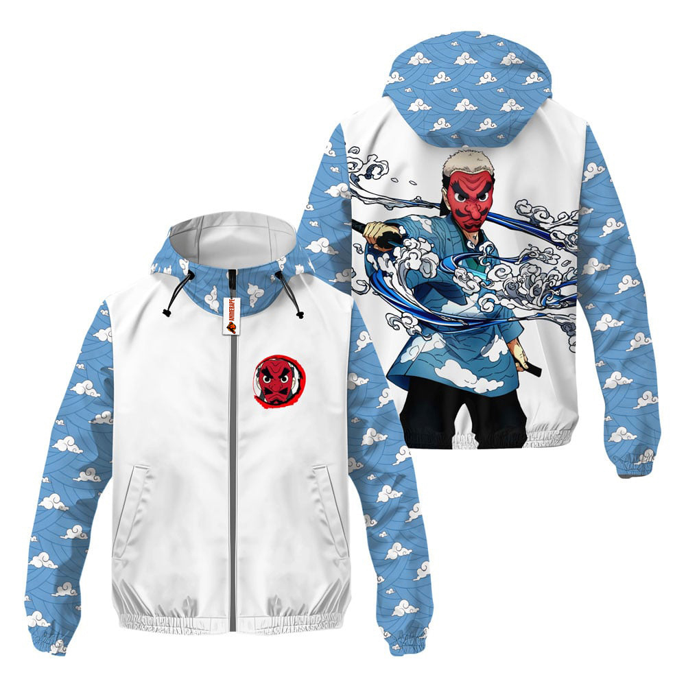 Introducing the Sakonji Urokodaki Lightweight Windbreaker Jacket for Men and Women, a stylish and functional piece that pays homage to one of the most beloved characters in anime. This windbreaker features an eye-catching graphic design inspired by Sakonji Urokodaki, known for his wisdom and nurturing spirit as a master trainer of Demon Slayers. The jacket not only protects you from the elements but also allows you to showcase your love for this iconic character in a fashionable way.