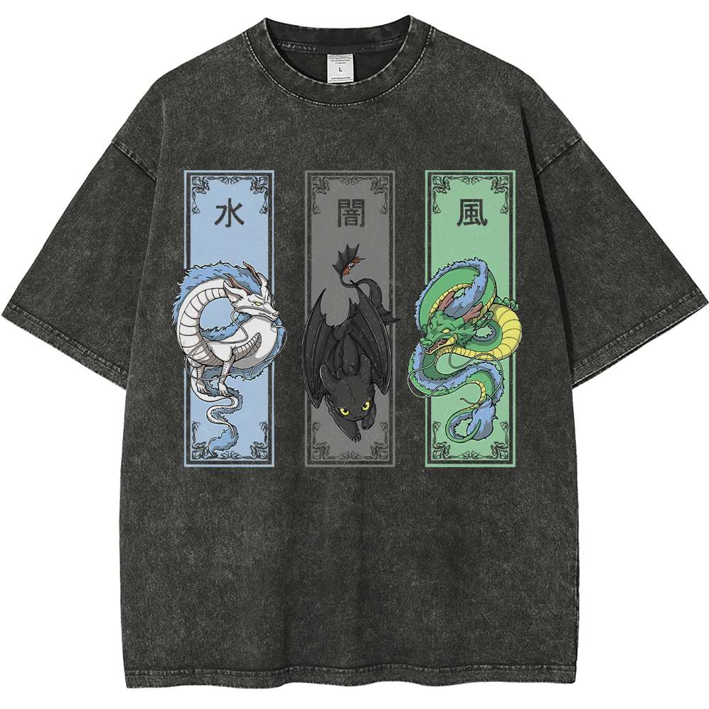 Anime Vintage Dragon T-Shirt, Shenron Haku Toothless Graphic Tee