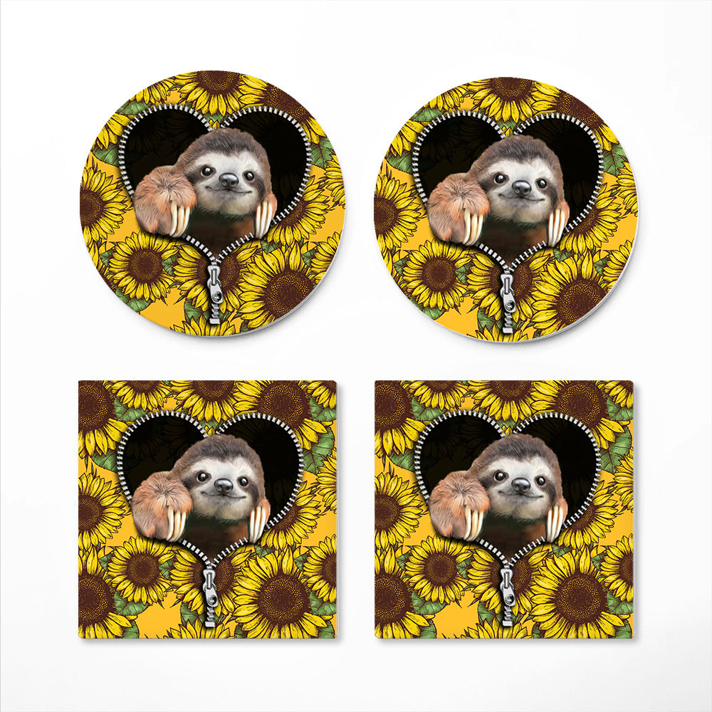 Cute Sloth Sunflower Zipper Design Drink Coasters