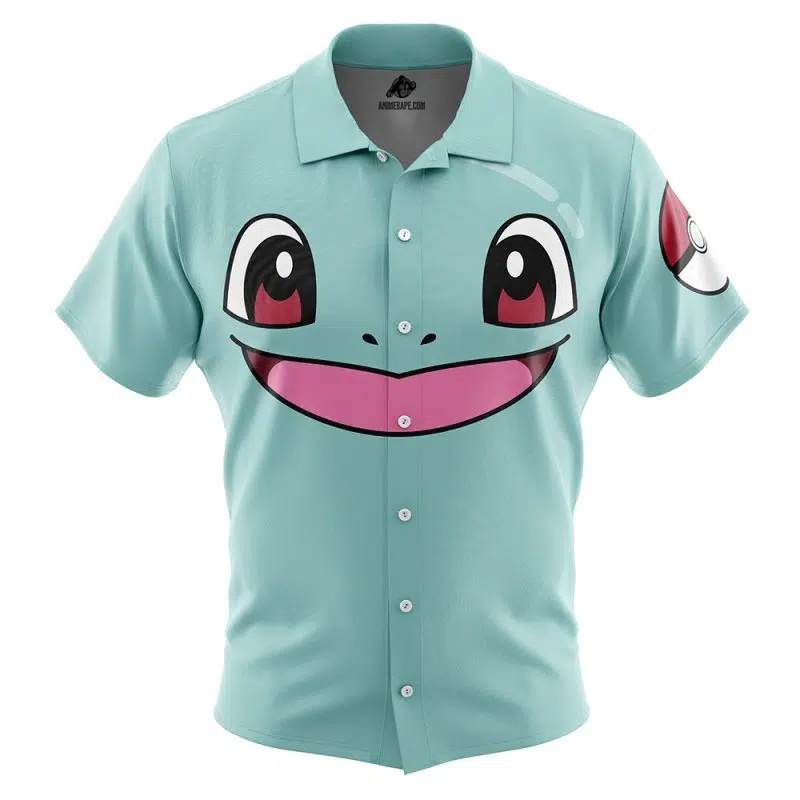 Squirtle Face Pokemon Button Up Hawaiian Shirt