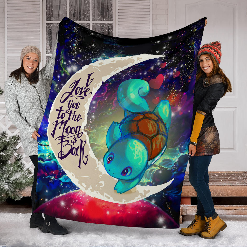 Embrace the charm of Squirtle and the mystical allure of the galaxy with the Squirtle Pokemon Love You To The Moon Galaxy Blanket.