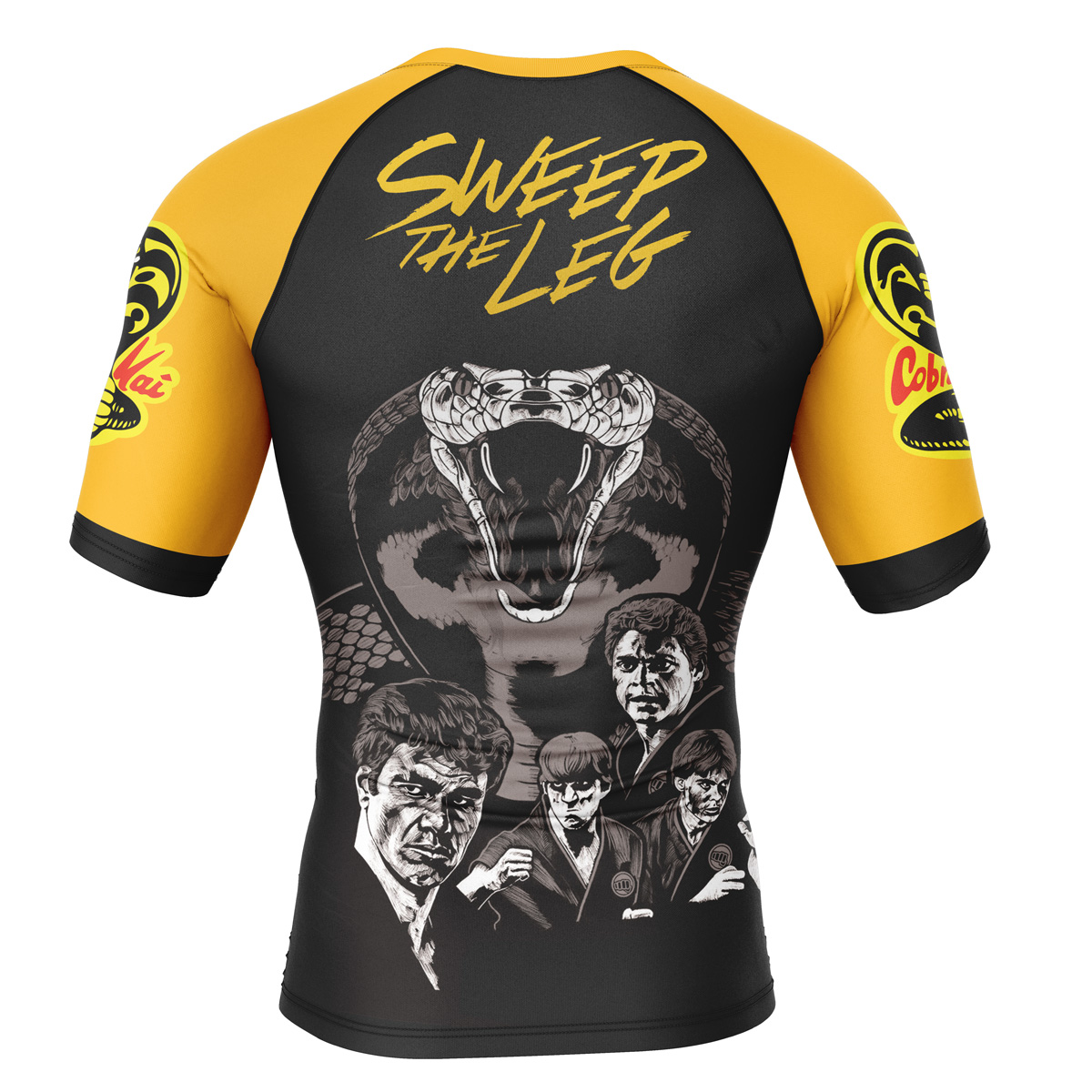 Unleash your inner martial artist with our Sweep the Leg Cobra Kai Short Sleeve Rash Guard Compression Shirt, available exclusively at AnimeBape! This dynamic product combines your love for Anime with the practicality of a compression shirt, allowing you to showcase your pride and passion in style.