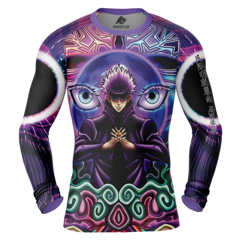 Trippy Gojo Satoru Jujutsu Kaisen Long Sleeve Rash Guard Compression Shirt