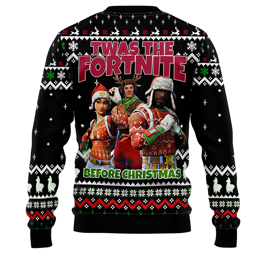 Get ready to drop into the holiday season with this “’Twas the Fortnite Before Christmas” Sweater, featuring a festive design filled with bold Christmas colors, classic knitted-style patterns, and iconic Fortnite character art. The front showcases three holiday-themed in-game characters dressed in seasonal outfits, bringing together cozy winter vibes and playful gaming energy.