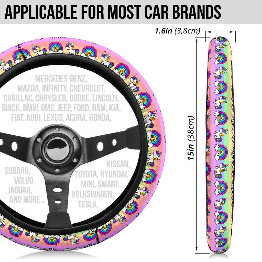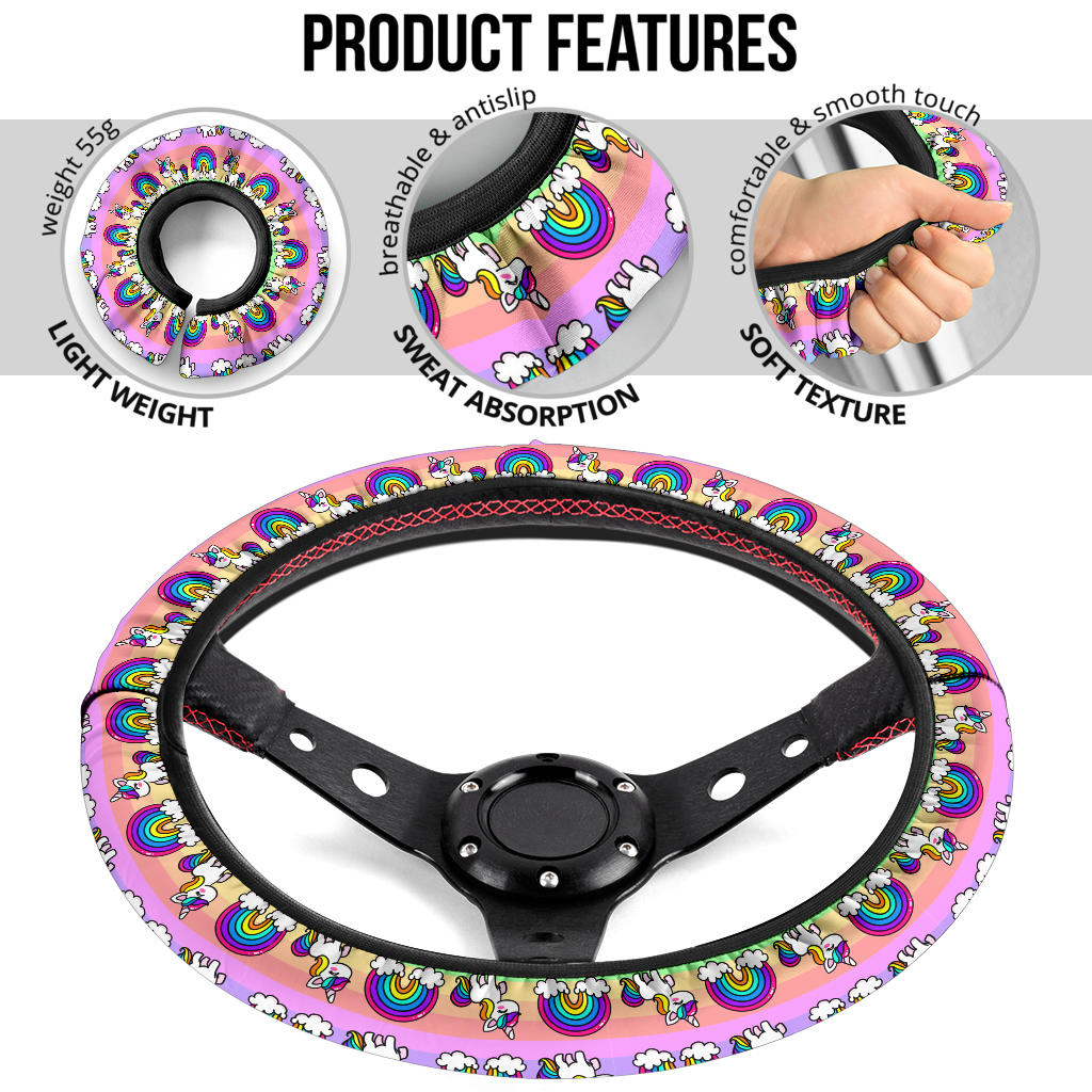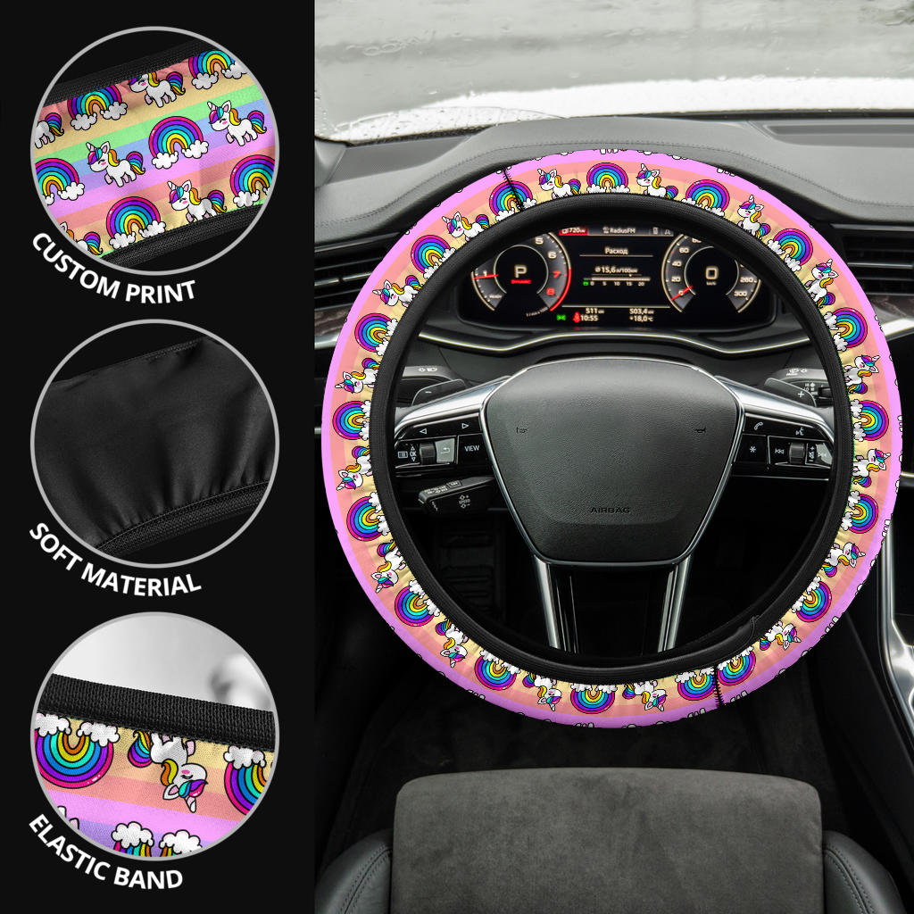 Pink Unicorn Rainbow Car Steering Wheel Cover – Premium Quality