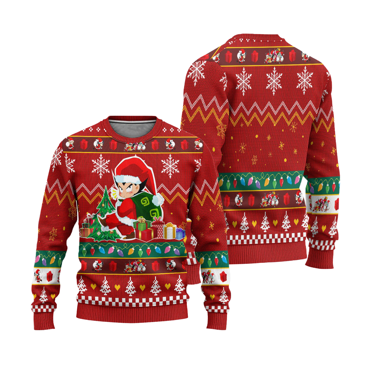 Vegeta, often referred to as the Prince of all Saiyans, is one of the most iconic characters in the Dragon Ball franchise. His relentless determination and complex character development have made him a fan favorite. Sporting his trademark spiky hair and a fierce attitude, Vegeta embodies strength and pride, traits that resonate with fans worldwide. This Christmas sweater not only honors his character but also brings a playful twist to the holiday season, making it a must-have for any Vegeta enthusiast.