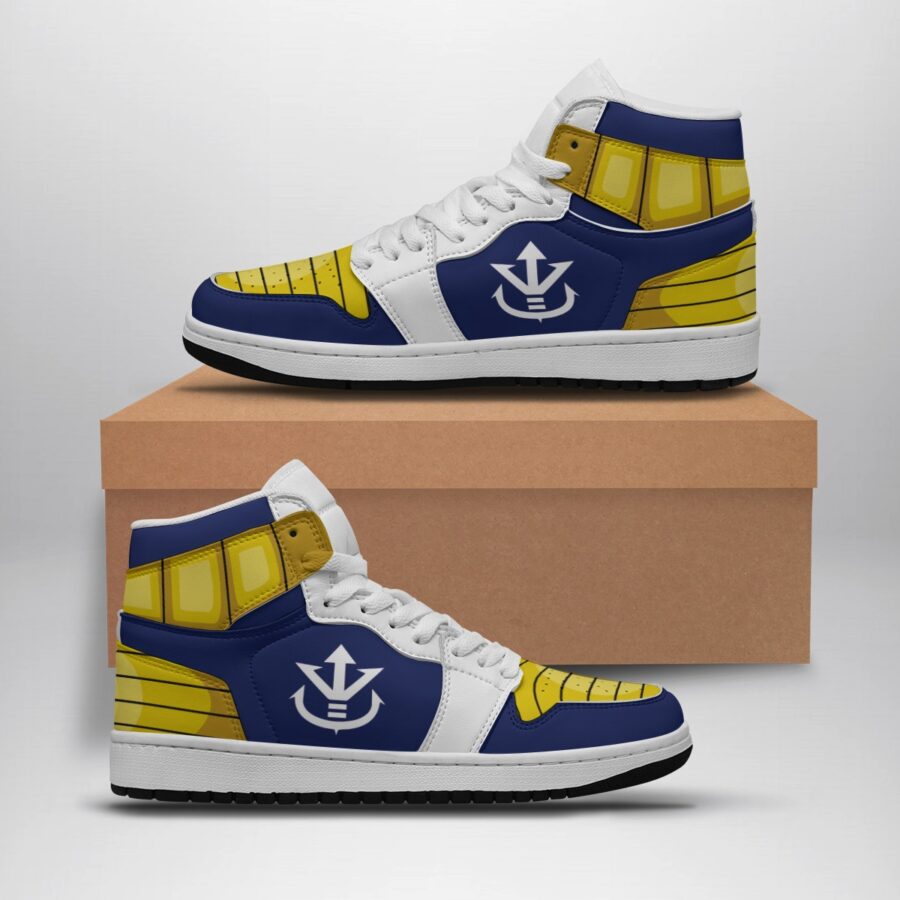 Step into the world of anime and basketball with the Dragon Ball Z Vegeta Uniform Mid 1 Basketball Shoes. Perfectly designed for fans of the beloved Shonen series, these sneakers blend style, comfort, and functionality, making them a must-have addition to your footwear collection. Sporting a striking design inspired by the iconic character Vegeta, these shoes are sure to turn heads on and off the court.